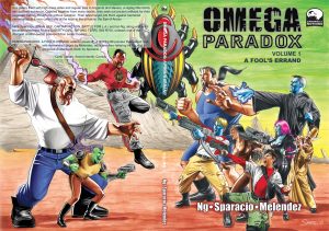 OMEGA PARADOX: A FOOL’S ERRAND collects issues Vol. 1 #1-4 and the #0 preview that started it all, with remastered pages by Melendez, additional new lettering by Ng, and a gorgeous wraparound cover by Sparacio.